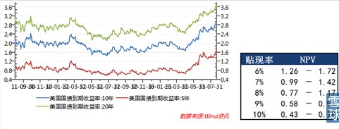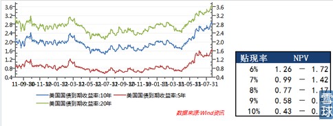 但如果因为IRS判定公司的贴现率过低,或者美国的市场利率持续的往上走,都将带动Solarcity的融资成本和贴现率上行,最终导致合同净现金流NPV往下走。假如贴现率上升到了10%,NPV将会下降到0.43到0.78。