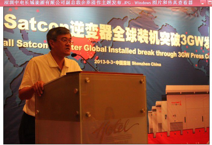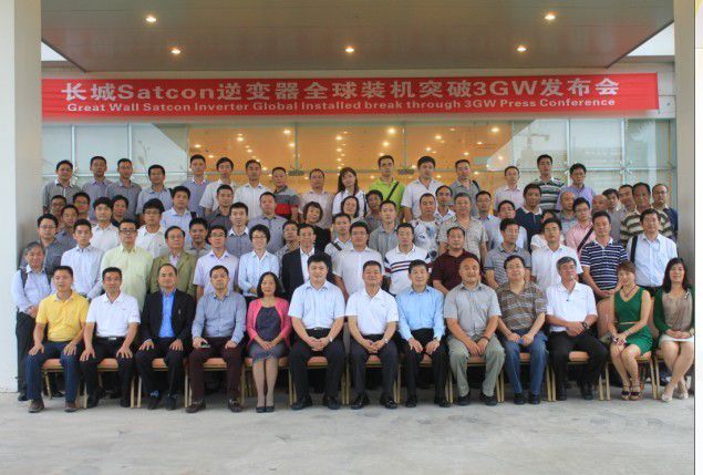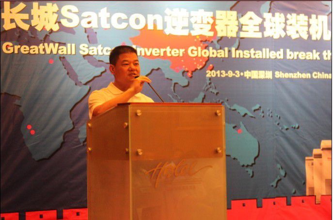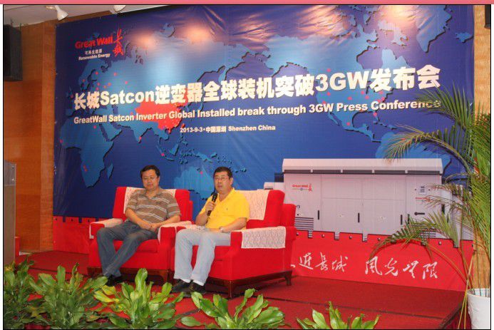 索比光伏网讯:2013年9月3日,深圳市深航国际酒店深航厅人声鼎沸,深圳中电长城能源有限公司(简称长城能源)“长城Satcon逆变器全球装机量突破3GW”新闻发布会在这里隆重举行。来自太阳能、电力等领域的专家、领导齐聚一堂,共同见证了这一历史时刻。长城电脑总裁兼长城能源董事长、总裁周庚申等领导共同出席了此次发布仪式。
