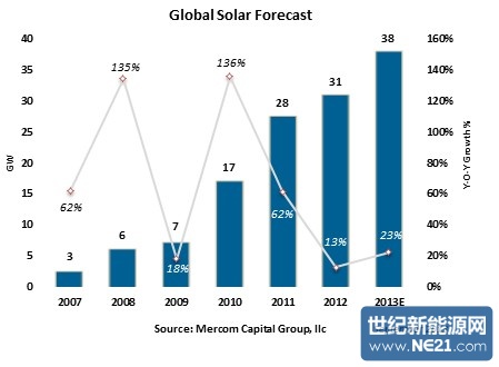 Mercom Capital重申其预测2013年全球新增光伏装机容量为38吉瓦