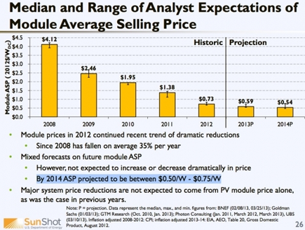 更为保守的预测数字显示,在2014年,ASP有可能在US$0.50-0.75/W之间