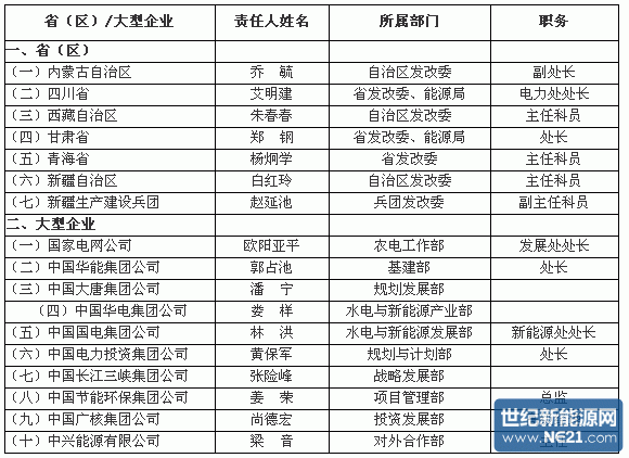 全面解决无电人口用电问题信息报送责任人名单