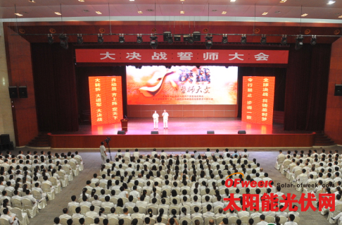 8月5日,集团召开誓师大会,围绕“一个思想、两个战场”正式打响“大决战”。图为英利集团“大决战”誓师大会现场。
