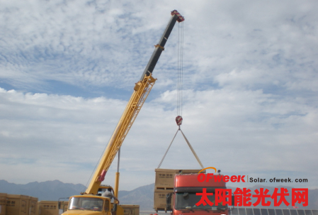 7月12日,由英利承建的“大唐巴州博湖20兆瓦光伏发电项目”一期5兆瓦现成功并网发电,日发电量最高可达30000多度,后续15兆瓦工程正在紧锣密鼓建设。图为英利组件卸货现场。