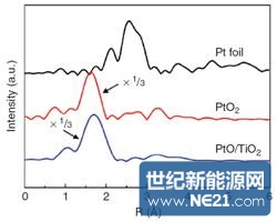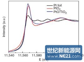 同步辐射X射线吸收精细结构谱(XAFS)具有非常高的元素选择性,能用于鉴别和判定材料中贵金属原子层面的结构信息,从原子水平揭示贵金属原子的第一近邻原子和外界环境。因此,该团队通过北京同步辐射装置1W1B-XAFS实验站,采用XAFS技术对该共催化剂的微观结构进行了解析,通过对实验谱进行计算模拟,成功证明了这一新型共催化剂的组成为一氧化铂。随后,在第一性原理计算及相关热力学分析的辅助上,阐明了其单向抑制氢气氧化过程的作用机理,最终在国际上首次提出了这一具有控制氢气反应方向能力的新型共催化剂材料,为光解水领域产氢共催化剂增加了新的一员。