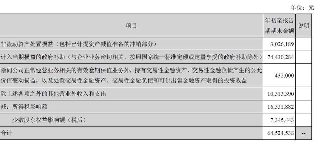 非经常性损益项目和金额