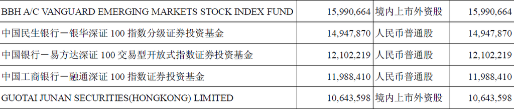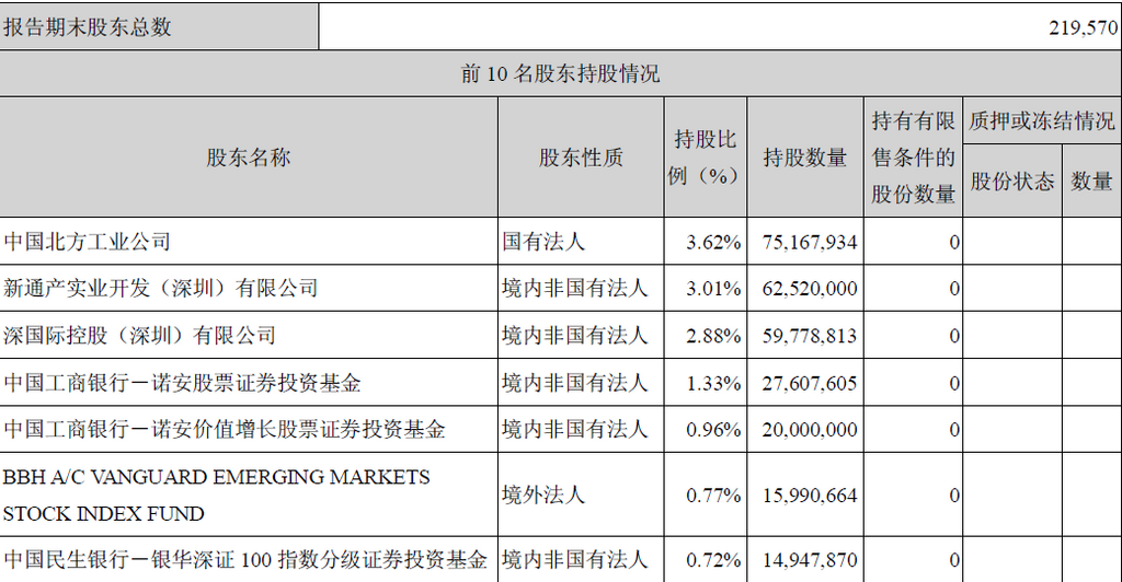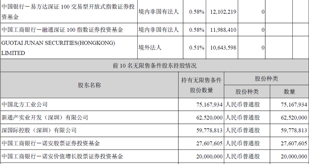 二、报告期末股东总数及前十名股东持股情况表