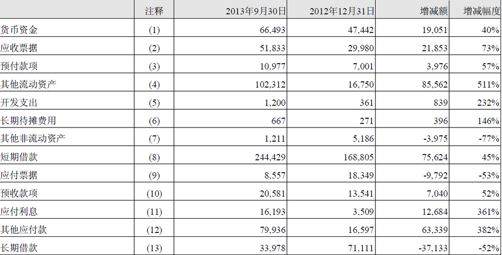 (1)货币资金增加主要系银行存款增加所致。