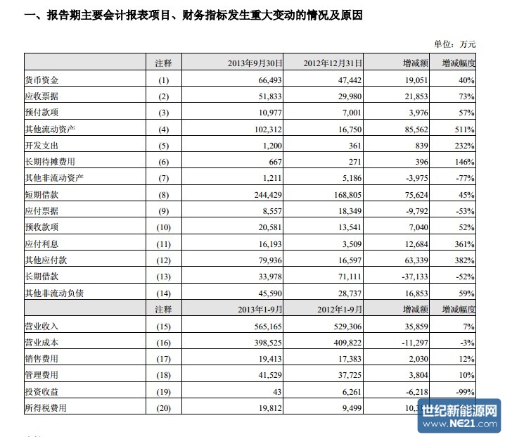 索比光伏网讯: 南玻光伏2013年第三季度财报