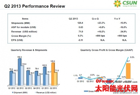 对于2013年第三季度,中电光伏预计总出货量将约为110MW,包括OEM加工的约20MW太阳能组件。