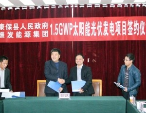 冀晓东代表康保县人民政府与振发能源集团董事长查正发共同签署了协议。