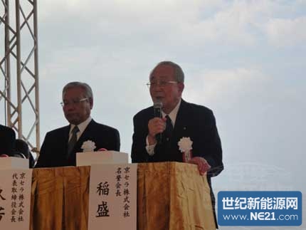 京瓷名誉会长稻盛和夫出席了11月4日举行的发电站竣工仪式,稻盛表示:“大约从30年前开始,我们就一直在研发利用太阳能发电的小规模能源。能够建成规模如此之大的发电站,心中真是感慨万千。”