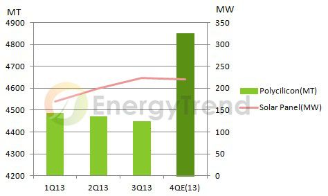 REC Group 2013年前三季发货量和预计第四季发货量: