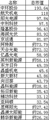 国内上市光伏企业最新市值评估排名(单位:亿元)
