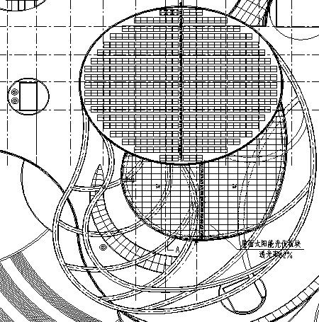 分析二:按照设计师要求采光顶光伏玻璃采用10mm超白钢化玻璃+0.76PVB+单晶硅片+0.76PVB+10mm钢化玻璃(图5中阴影部位为异形玻璃)。经光伏玻璃厂家与我司设计师沟通,因文化中心幕墙工期紧张,异形板块加工周期较长,残缺的BIVP组件制作工艺不能够满足建筑师外观效果,且影响到本项目的总机容量控制。