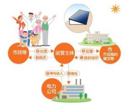京都市已于2012年度设立了“市民合作发电制度”,利用3座市有设施运营光伏电站。该制度的运营主体通过市民等集资,作为光伏发电设备的设置和运营资金,售电获得收入后再返还给出资者。该制度2013年度又新选中了5座设施。