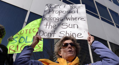 示威者声称,Xcel能源公司低估了业主们的太阳能价值。