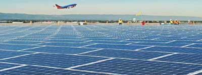 阿特斯阳光电力公司建设的百万瓦级光伏电站示例。图片是在美国的飞机场建设的百万瓦级光伏电站。(出处:阿特斯阳光电力公司)