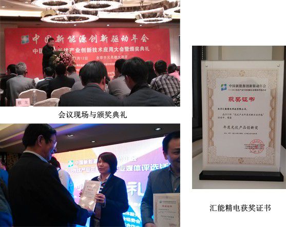 索比光伏网讯:2013年12月12日,首届“中国新能源创新驱动年会---中国国际光伏产业创新技术应用大会”在北京开元名都酒店隆重召开,北京汇能精电科技有限公司应邀参加此次光伏盛会,并凭借其优势产品MPPT太阳能充放电控制器荣获“2013年度光伏产品创新奖”!