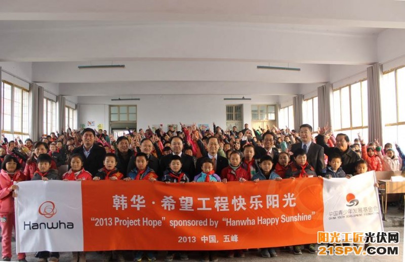“我们很荣幸能在这次合作中发挥积极的作用。” 韩华新能源副总裁郭颀先生则补充道,“为希望小学建成这项30千瓦太阳能光伏系统,将是我们公司今年企业社会责任活动的重要成果之一。”