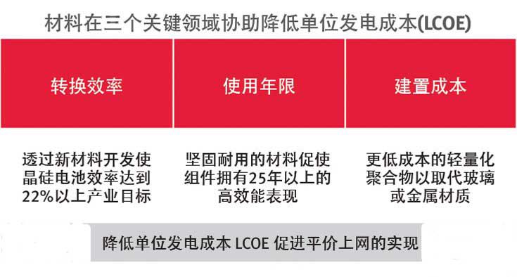杜邦™ Solamet® 透过下列方式降低整体单位发电成本(LCOE) : 增加组件电力输出、减少材料用量,同时提升拉力、焊接性以及可靠性。