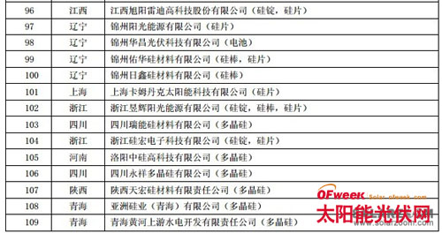 12月30日,工信部发布符合《光伏制造行业规范条件》企业(第一批)的最终名单,共有109家企业入榜,较之前拟公告名单少了25家。