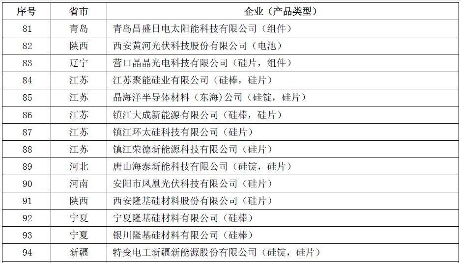 2013年9月工信部发布更高门槛的《光伏制造行业规范条件》后,日前,第一批符合条件的企业名单终于面世,共109家企业获得了行业通行证,包括天合光能、英利、阿特斯等在内的光伏巨头纷纷顺利跨过被抬高的行业门槛。