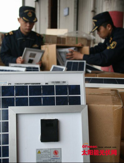 12月31日,宁波海关查验关员清点侵权太阳能组件。