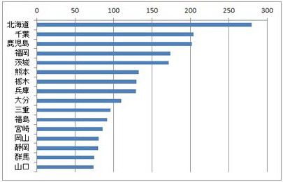从各都道府县拥有1兆瓦以上百万瓦级光伏电站的状况来看,设备认证量方面,北海道为280套,位居首位,关东地区及九州地区的各县紧随其后,千叶县为204套、鹿儿岛县为202套、福冈县为174套、茨城县为172套。在已启动设备量方面,福冈县为55套,位居第一位,其后依次为北海道(35套)、茨城县(28套)、静冈县(26套)、千叶县(25套)、兵库县(25套)和冈山县(25套)。