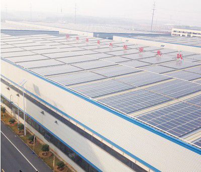 图为兴业太阳能湖南湘潭产业园20.8MW屋顶光伏发电及智能微电网示范项目。该屋顶电站年发电量达2400万度,节约标准煤9750吨,纯净水9750万升,减排二氧化碳23750吨,粉尘6625吨,二氧化硫725吨。