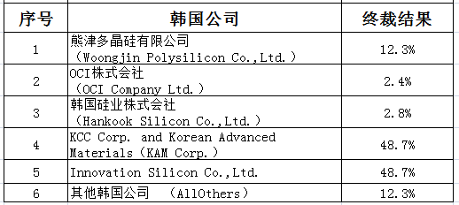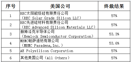 根据《反倾销条例》的有关规定,调查机关向国务院关税税则委员会提出对原产于美国和韩国的进口太阳能级多晶硅征收反倾销税的建议。国务院关税税则委员会根据调查机关的建议作出决定,自2014年1月20日起,对原产于美国和韩国的进口太阳能级多晶硅征收反倾销税。对各公司征收的反倾销税税率如下: