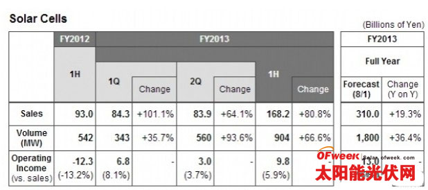 太阳能业务在季度内实现了59亿日元(约合5900万美元)同比去年同期增长了94%。
