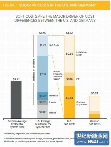 该报告从每项细项的美国与德国比较,列出许多美国住宅太阳能电池系统可节省成本之处,其中不意外的,主要在于非硬体部分;而此报告也与美国可再生能源实验室(National Renewable Energy Laboratory, NREL)所见略同。