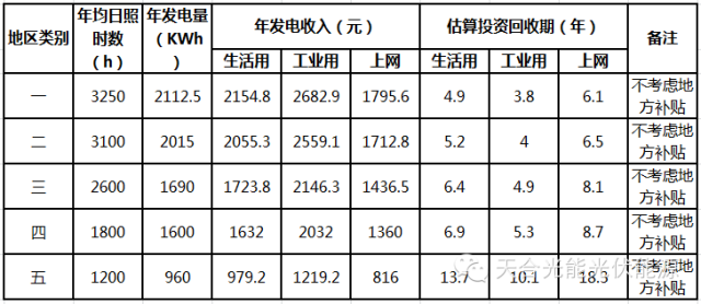 如果用山东、河南、苏北、安徽北部等第三类地区日照条件置换第五类地区日照条件同理测算,上网、生活用、工业用投资回收期分别为8.1年,6.4年,4.9年。而一二类地区回收期会更短。