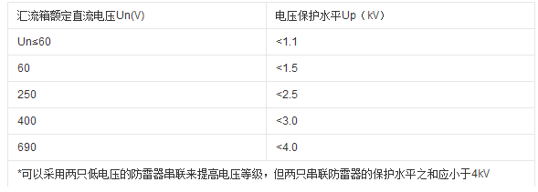 汇流箱输出端应配置防雷器,正极、负极都应具备防雷功能。规格应满足如下要求: