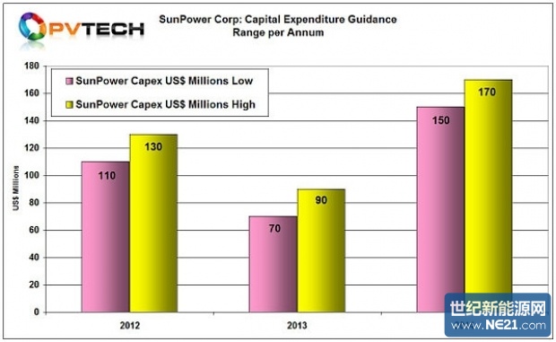 SunPower在其2013年年度报告中指出,2014年资本支出将达1.5亿至1.7亿美元,较其2013年7000万至9000万美元的目标范围可能提高88.8%。