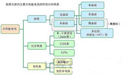 索比光伏网讯:目前太阳能电池按照所使用的原料、构造及制造方法分为数种。其中,结晶硅类太阳能电池多指以硅半导体基板为原料的单晶硅太阳能电池及多晶硅太阳能电池;此外还有非晶硅类太阳能电池,此类电池以与液晶面板相同的薄膜制法为基础,都是在玻璃基板而非硅基板上蒸镀非晶硅制造的。