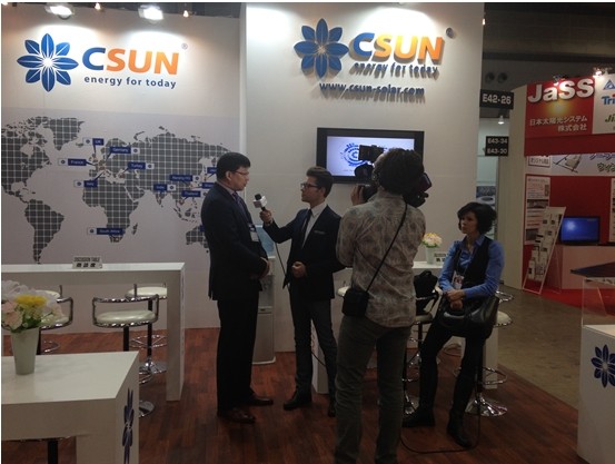 展会期间,蔡志方先生还接受了欧洲媒体的采访,让越来越多的欧洲及东南亚客户更深入地了解中电光伏及其产品特性,同时也让客户了解到了中电光伏无限的发展潜能。另外,我国驻日参赞也亲临中电光伏展台现场,与中电光伏销售团队亲切交谈,鼓励中电光伏继续推出更多、更好的高新技术产品,让全世界更多的人能够享受到清洁能源,让世界了解中电光伏,让中电光伏走向世界!