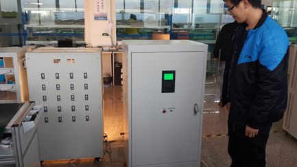 上方三相并离网一体机以IPM模块构筑功率变换,由于并离网一体机整成充电、MPPT控制、逆变、切换为一体,技术要求和难度高,拒绝采用低成本的单管IGBT,追求整机结构整洁、运行稳定可靠。上方三相并离网一体机功率梯度为3Kw-100Kw,内置的充电模块最高配置电流为200A基本能满足球场2000AH的大容量蓄电池组的充电要求,其中充电电压最高配置为500V,满足了大容量的后备储能发的充电要求。实验现场如下图所示。