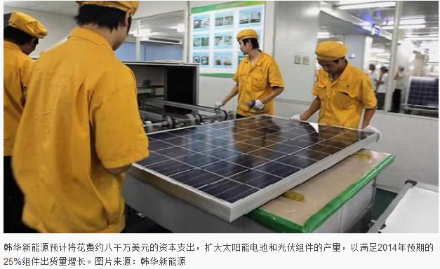 索比光伏网讯:一级光伏制造商韩华新能源预计将花费约八千万美元的资本支出,扩大太阳能电池和光伏组件的产量,以满足2014年预期的25%组件出货量增长。