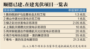 今年,佛山提出《关于促进佛山市太阳能发电应用的实施意见(征求意见稿)》 ,加强太阳能光伏在全市的应用,其中到2015年,顺德区要完成140兆瓦的装机容量。基于上述要求,顺德提出在充分利用上级扶持政策的同时,制定光伏发电应用规划的顶层设计。