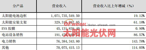 公司在经历产能过剩、全行业亏损的2012 年后,业绩得到很大改善,净利润翻倍增长,主要原因在于太阳能电池铝边框和安装支架产品的销售增加以及毛利率相对较高的太阳能电站收入占比提高。如下表: