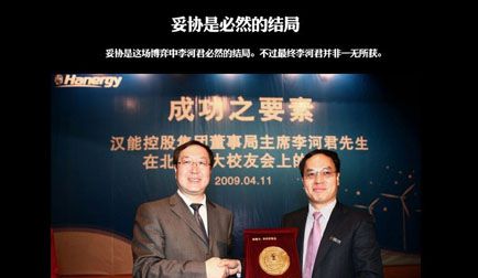 妥协是这场博弈中李河君必然的结局。不过最终李河君并非一无所获:他们拿到了6大水电站中资源最好的一个——总装机容量300万千瓦的金安桥水电站。其它几大水电站被分配给几大国有公司,李河君在其中有少量参股。对于此前的考察投资,李河君也得到了一定的补偿。