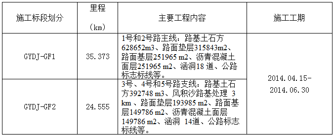 2.2建设规模:本项目为园区道路(5条)新建工程,公路等级三级,建设里程59.928km。其中:1号和2号路为主线,共长35.373km,设计速度30km/h,路基宽度7.5m,路面满铺;3号、4号和5号路为支线,共长24.555km,设计速度20km/h,路基宽度6.5m,路面满铺。桥涵设计荷载公路—Ⅱ级,设计洪水频率: 1/50,全线无大中桥,小桥涵与路基同宽,路面类型为沥青混凝土路面。