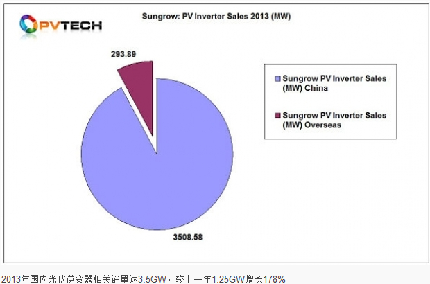 阳光电源在其2013年年度报告中指出,其光伏逆变器产品继续主导中国国内市场,过去两年主要是地面安装公共事业规模。该公司还指出,其在全国光伏发电站系统综合业务的市场份额也迅速发展。