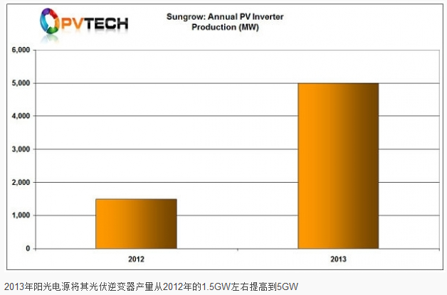 为了满足国内和海外需求,2013年阳光电源将其光伏逆变器产量从2012年的1.5GW左右提高到5GW。