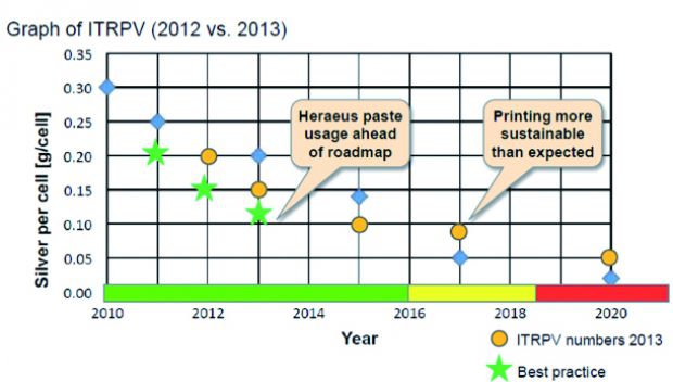 由于导电浆料在其中扮演重要角色,为此太阳电池、组件制造商对一款正面导电银浆的评判标准中,成本也成为很重要的一个考虑因素,他们希望银浆价格低,希望银浆企业能帮助他们实现更低的银耗量,减少印刷单耗,降低对贵金属的依赖。
