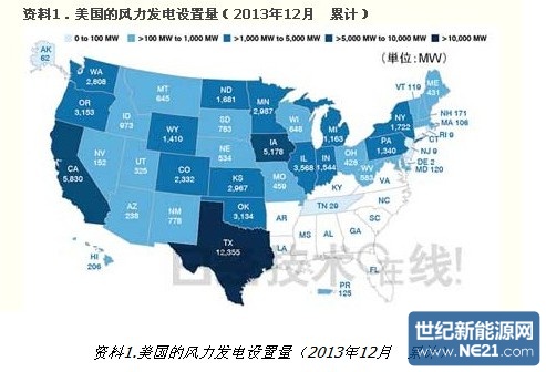 资料1.美国的风力发电设置量(2013年12月 累计)