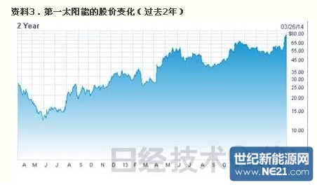 第一太阳能经营的业务,是利用低成本高效率的化合物半导体碲化镉制造薄膜模块,该公司长年致力于压缩成本、提高效率等计划,享有上佳的口碑。但是,随着中国制造商推行量产战略,供需平衡被打破,模块的价格大幅下跌,受此影响,该公司的股价也出现了暴跌。面对这样的局面,该公司积极采取行动,向下游拓展业务范围,特别是发电站的建设和运营,在扩大收益机会的同时,第一时间推行了压缩总体成本的业务模式。其效果已经显现。随着系统成本的稳步下降,该公司的收益开始回升,一落千丈的股价也已经回暖(资料3)。