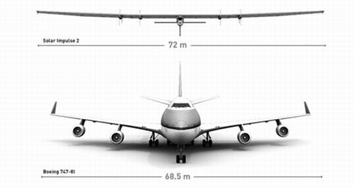 “太阳驱动”号曾是世界上最大的太阳能飞机。而“太阳驱动”2号则更大更重。它的翼展达72米,堪比波音747-800型客机,重2.3吨,最大飞行高度可达8500米,最高时速为140公里。