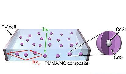 当CdS内部核心嵌入可将太阳能导入窗缘太阳电池的PMMA窗格时,CdSe量子点吸收光子,然后从CdS核心以不同的波长重新发射能量。